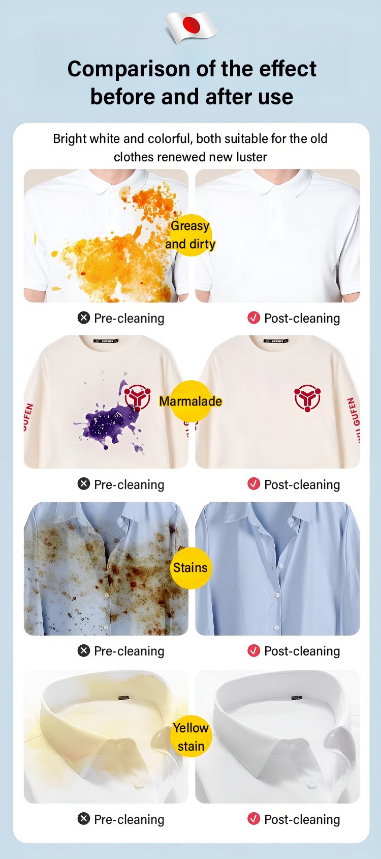 CZYŚCI OLEJ - Zwykłe detergenty nie są w stanie usunąć ciężkich plam z oleju. Nie martw się! Nasze wielofunkcyjne tabletki czyszczące z bio-enzymem pomogą Ci łatwo rozwiązać ten problem. To najprostszy sposób na czyszczenie wszelkiego rodzaju plam. Wystarczy jedna sztuka, a każde ubranie, buty czy kubek będą czyste jak nowe!