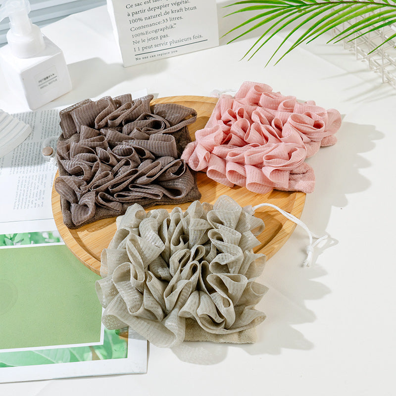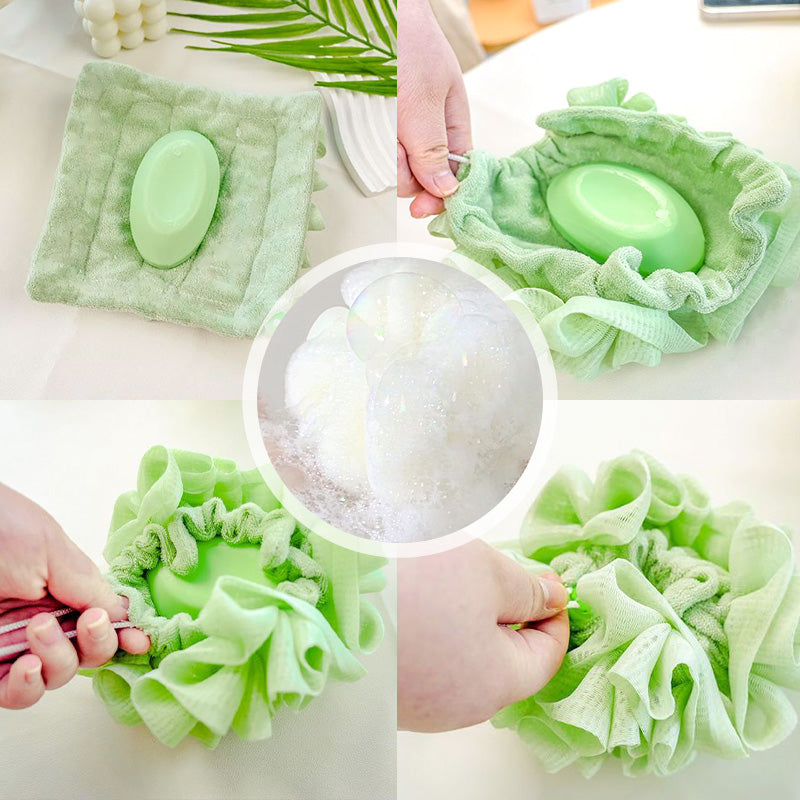 MIĘKKIE SPIENIANIE: Wykonana z miękkich, wysokiej jakości materiałów gąbka ma drobno tkaną siatkę, która generuje bogatą, luksusową pianę. Wystarczy włożyć mydło, pociągnąć za sznurek i rozkoszować się kremową, pienistą kąpielą.