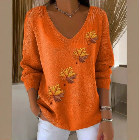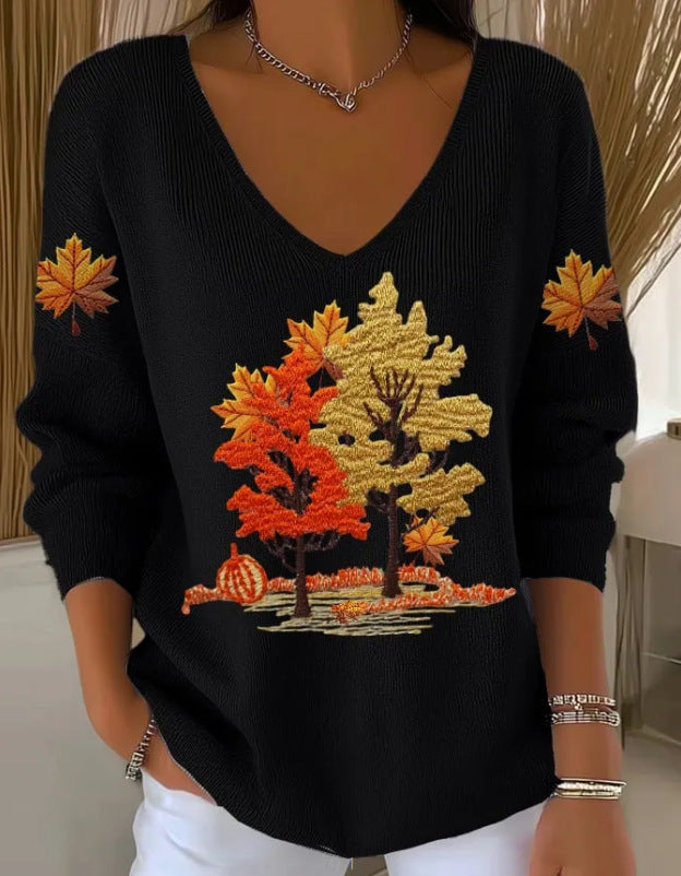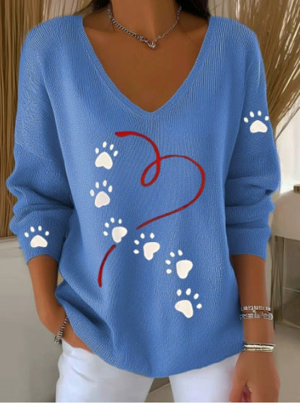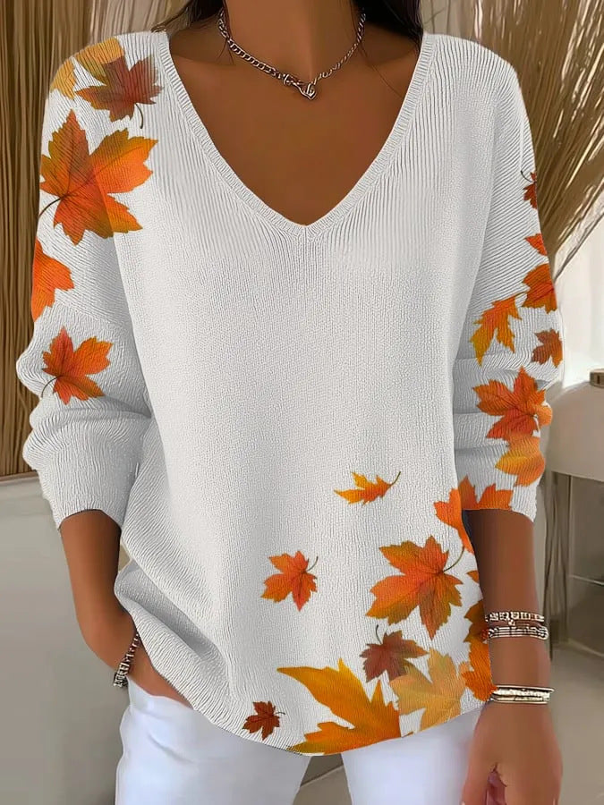 Nowy top z długim rękawem i dekoltem w serek, z nadrukiem